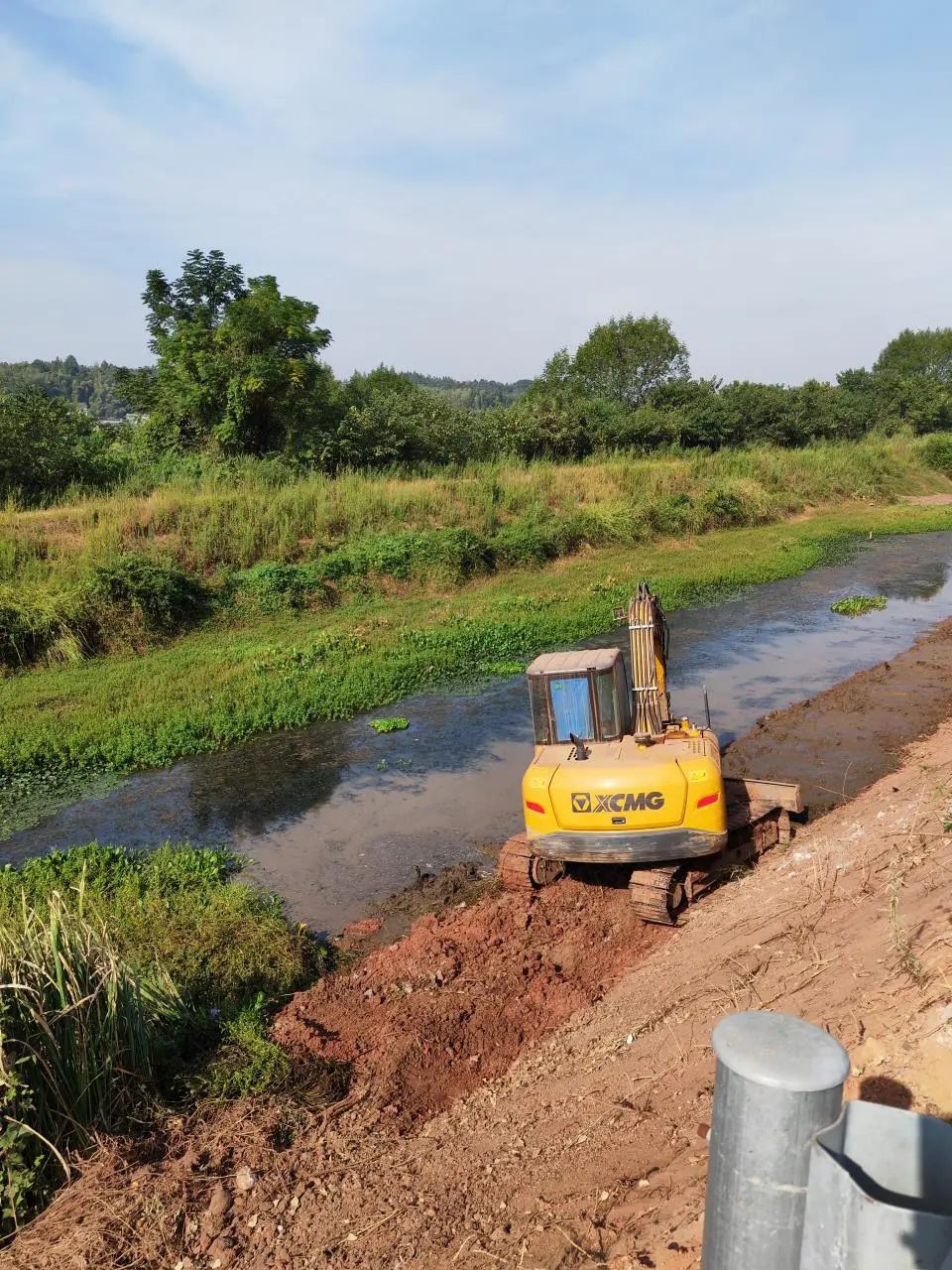 烈日炎炎,沧沙港的两岸机车轰鸣,一拨人忙碌抽水抗旱,另一拨人修整河道。