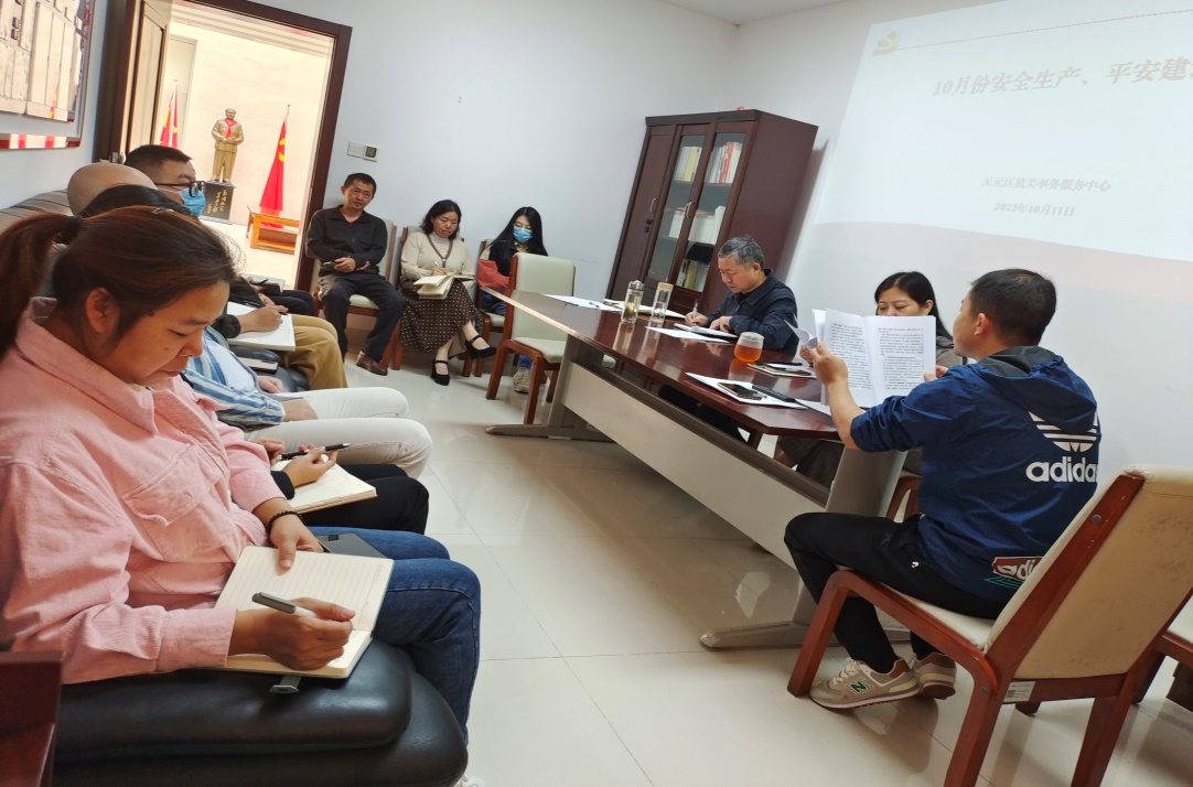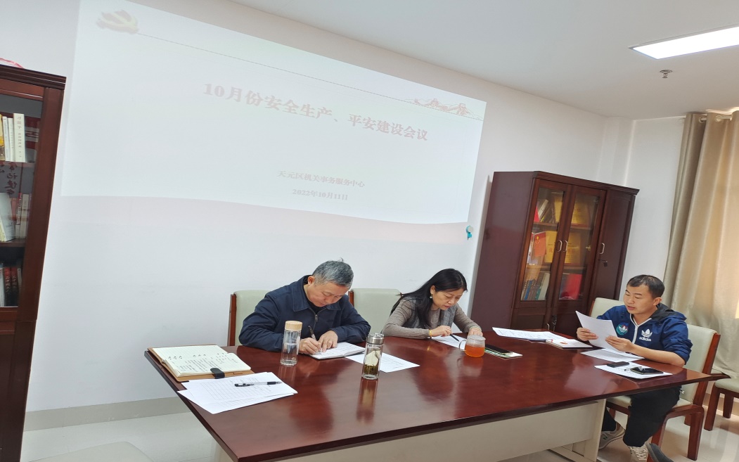 10月11日上午,天元区机关事务服务中心组织召开10月安全生产、平安建设会议,全体干部职工及三平台主管参加会议。