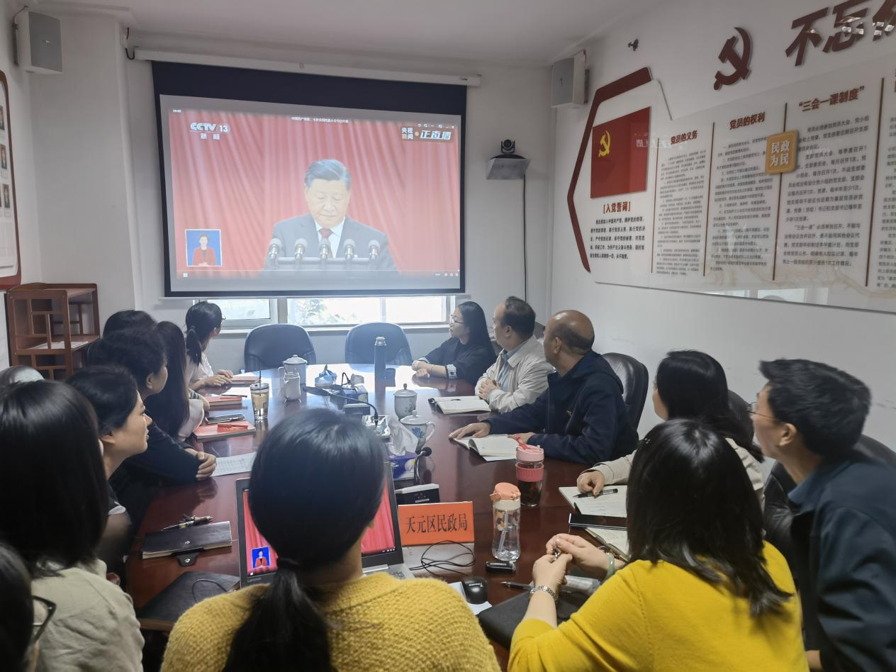 10月16日,中国共产党第二十次全国代表大会在北京人民大会堂隆重开幕。株洲市天元区民政局组织干部职工收听收看党的二十大开幕盛况,认真聆听学习习近平总书记在大会上所作的报告。随后,局党组理论学习中心组、局党支部第一时间开展了学习讨论。