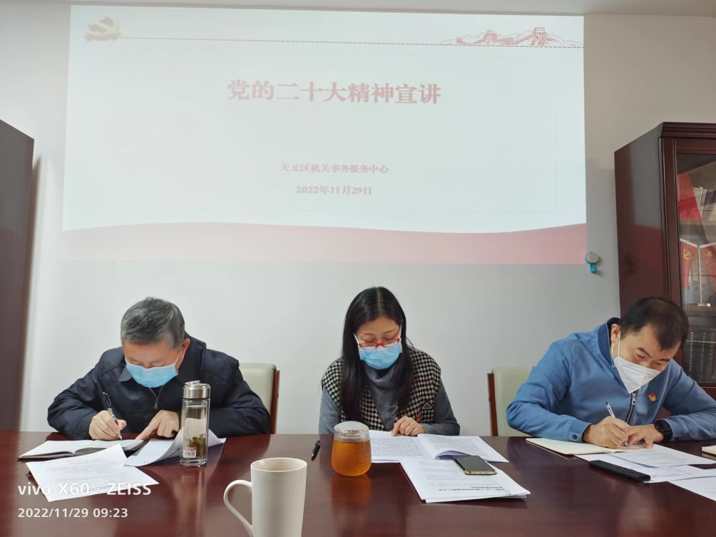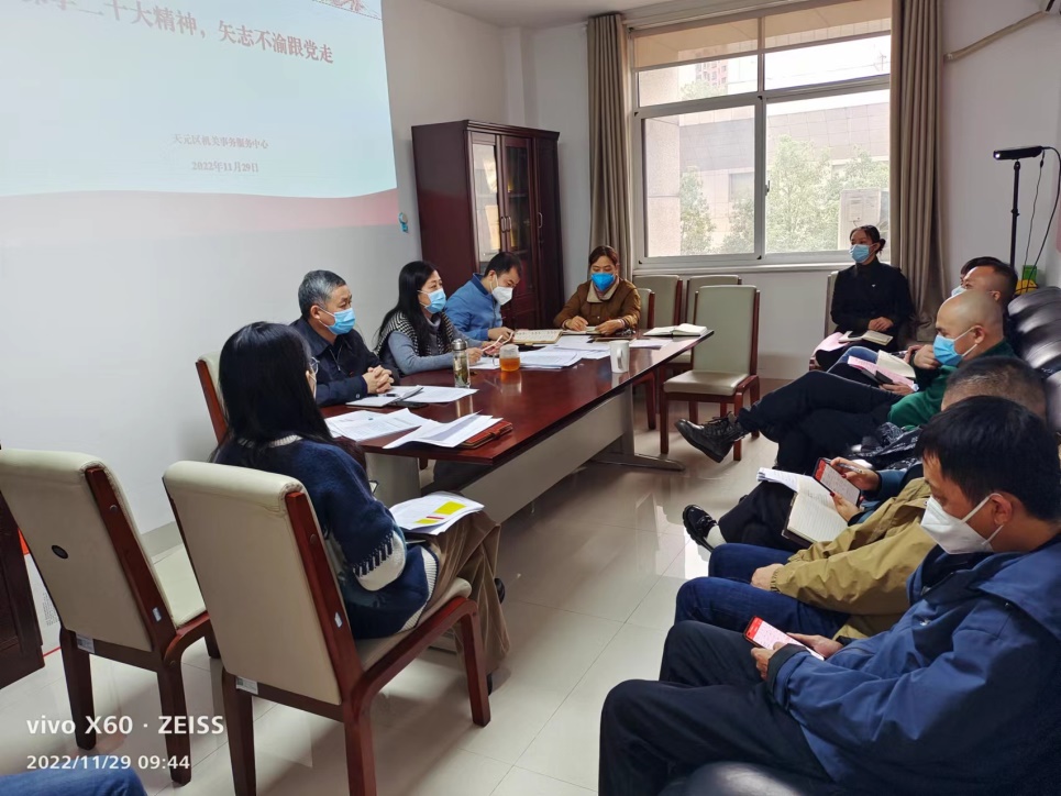 下一步,天元区机关事务服务中心把深入学习贯彻党的二十大精神作为当前首要的政治任务,努力探索机关事务发展新理念,为机关运行提供更科学的管理、更节约绿色的保障、更主动细致的服务。