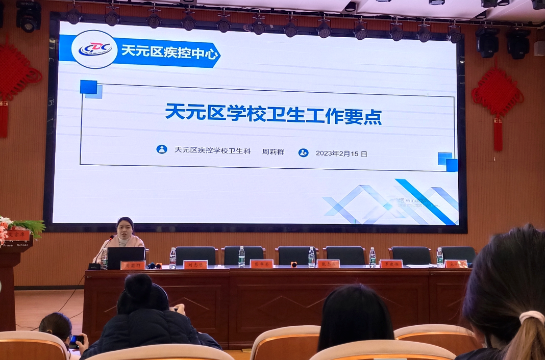 区教育局还邀请天元区疾控中心学校卫生科周莉群科长开展了题为《天元区学校卫生工作要点》的专业培训。周科长就“两案九制”、结核防治、健康教育、其他常规卫生工作作了专业而细致的讲解。