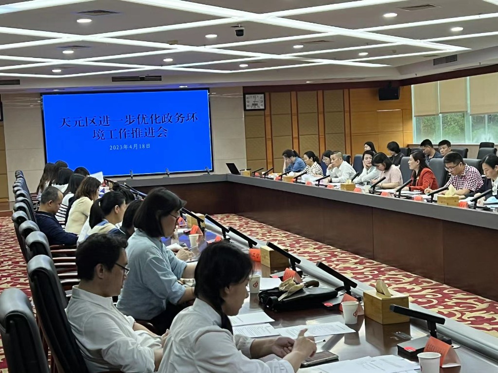 4月18日,天元区召开“进一步优化政务环境工作”推进会,区人民政府副区长蔡滔主持会议,区直各单位、各镇、各街道相关负责人参会。