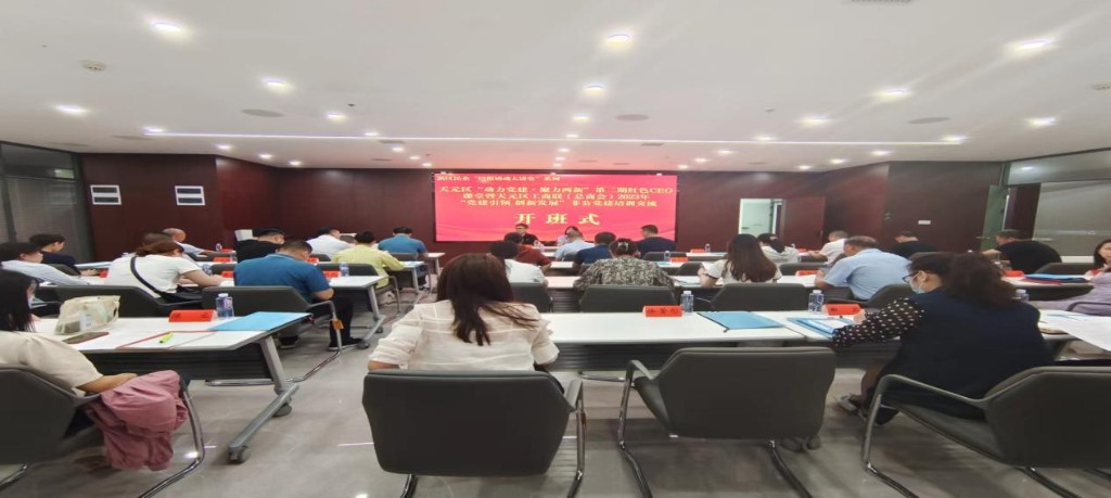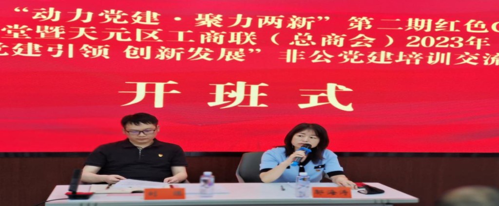 5月26日上午培训交流活动举行开班仪式,开班式指出,非公有制企业党组织是党在企业中的战斗堡垒,在企业发展中发挥政治引领作用,天元区工商联将坚持以习近平新时代中国特色社会主义思想为指导,以学习宣传贯彻党的二十大精神为主线,以“新区民企培根铸魂大讲堂”为载体,全方位、多层次开展非公党建工作,团结引领民营经济人士坚定发展信心、旗帜鲜明跟党走。