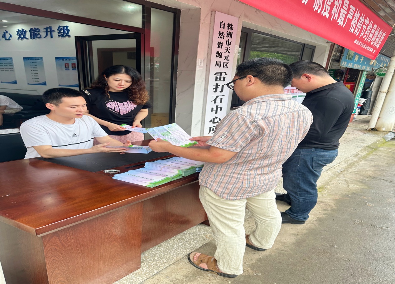 2023年6月25日是第33个"全国土地日",天元区自然资源局副局长刘伟带领耕地保护股、土地开发利用股、用途管制股、群丰中心所、雷打石中心所相关工作人员冒着蒙蒙细雨,前往雷打石镇开展以"节约集约用地 严守耕地红线"为主题的宣传活动。