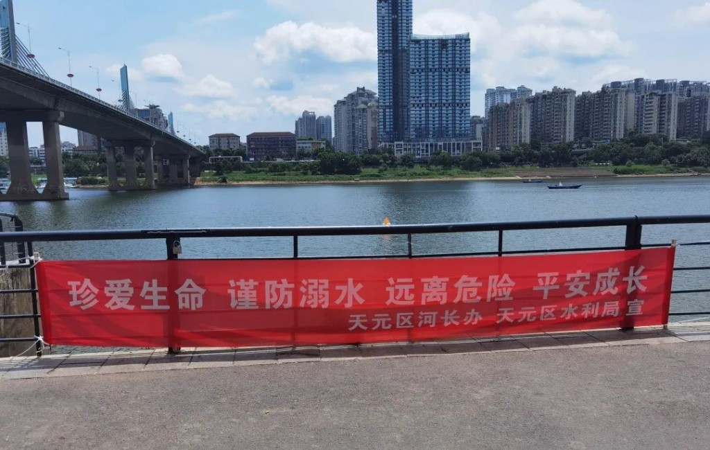 前期,天元区河长办通过在湘江沿岸等显眼位置悬挂防溺水横幅标语及张贴海报等措施对重点区域进行宣传引导。