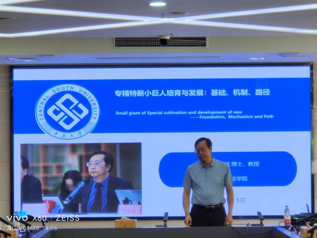 民建省委会法制委员会主任、中南大学法学院教授蒋言斌做了《专精特新小巨人知识产权保护:基础、机制、路径》专题讲座,巡讲团成员向文律师做了《企业合同法律解析》专题讲座。
