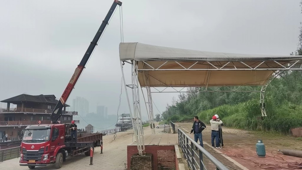 湘江风光带上,有一个钢筑大棚高10米,占地 60 多平方米,影响到湘江行洪安全。今年 5 月,天元区河长办联合相关部门对其进行拆除。
