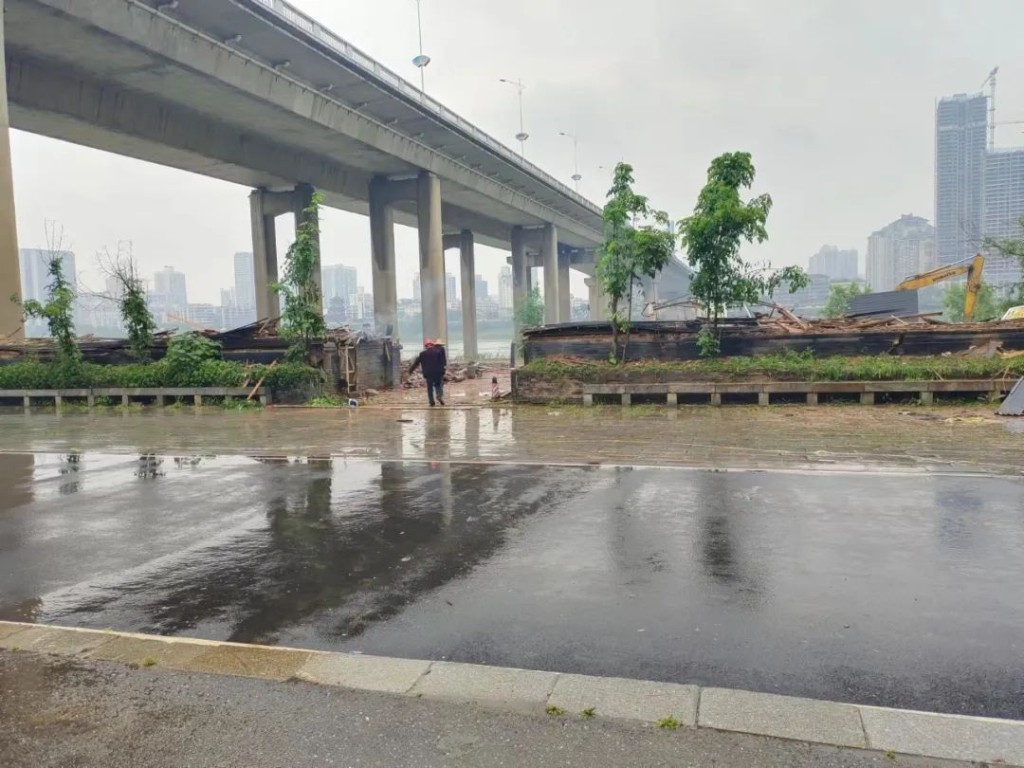 ▲拆除湘江风光带天元大桥底钢筑大棚