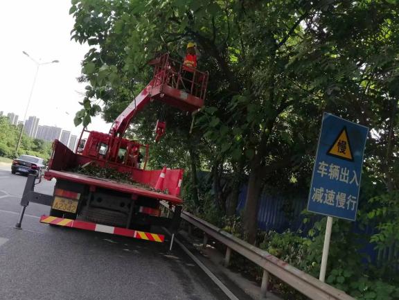 近期,在天元区城管局组织下,园林绿化工人在西环线开展快速环道周边环境深入整治工作,整治内容包括杂树砍伐、行道树修剪、沟道清於疏浚等。