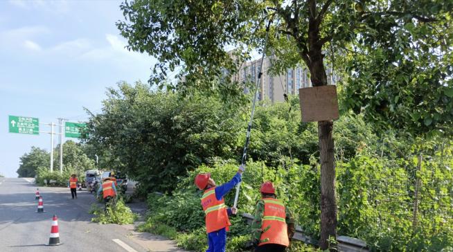 目前整治工作已经完成深度清理面积6000平方米,砍伐杂树近200株,修剪行道树492株,所有交通标志牌在修剪后均一览无余,保障了整体景观效果,进一步消除交通安全隐患。