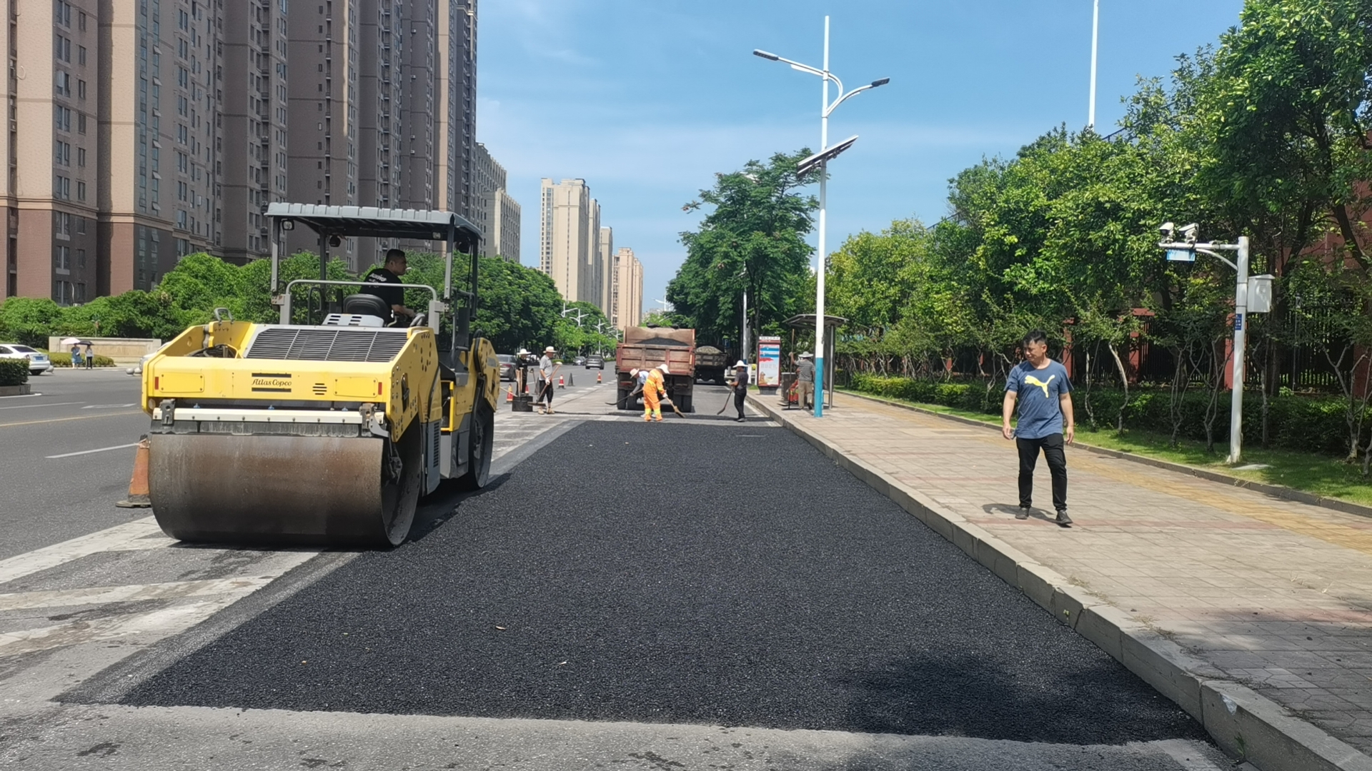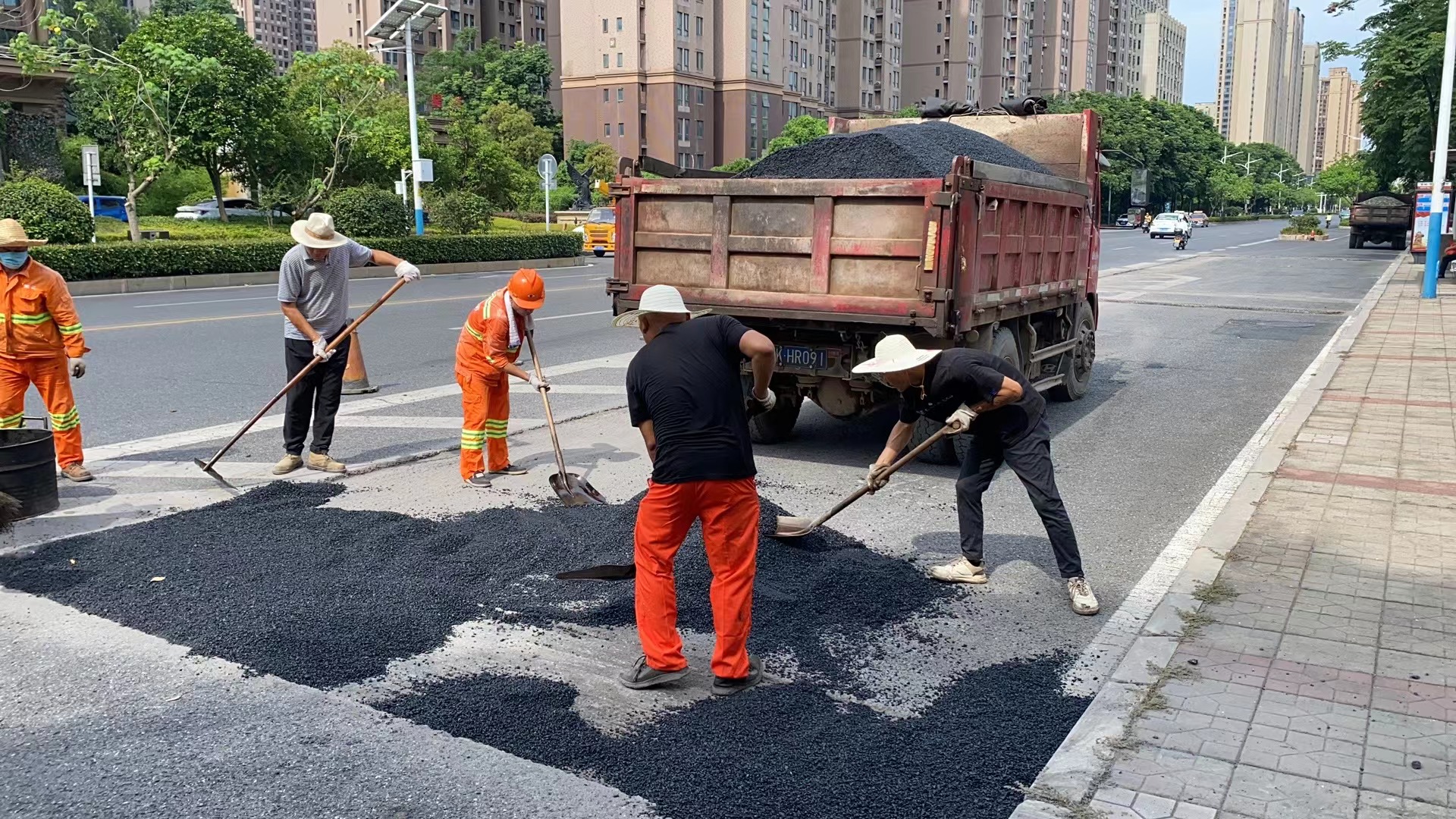 入夏以来,市政人员本着"小洞大补,圆洞方补、碎洞通补、浅洞深补"原则,全力抢抓施工黄金季节,用辛勤汗水诠释着坚守和付出,大力推进设施养护奋斗一线。严格按照技术标准规范要求,针对道路破损的不同程度问题,进行切割凿除/铣刨、清理、喷撒、摊铺、压实、封边等标准修复,保障坑洞修复质量。截至目前,该中心已完成辖区西环线、长江路、泰山路、天伦路、天台路、黄河路等多路段坑洞修补工作,累计修复沥青路面4000余平方米,开凿灌缝2150余米。