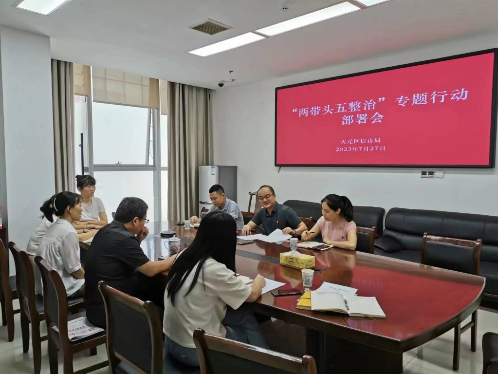 7月27日上午,天元区信访局组织召开“两带头五整治”纠风防腐专项行动专题部署会议,进一步贯彻落实中央八项规定精神、集中整治“违规吃喝、违规收送礼品礼金、违规旅游、打牌赌博、酒后驾车”等突出问题。信访局全体干部参加。