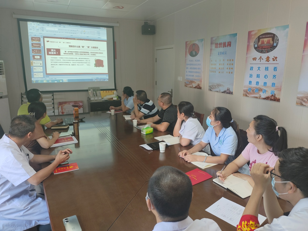 为贯彻党的二十大精神,全面推进习近平新时代中国特色社会主义思想,进一步强化基层医疗机构党员干部廉洁从医意识,全面推进“清廉医院”建设。8月4日下午,天元区卫生健康局党委委员、副局长刘湘辉来到天元区马家河街道社区卫生服务中心上了一堂别开生面的党风廉政建设专题党课。