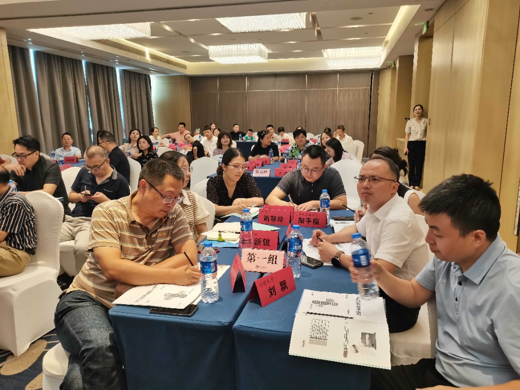 培训活动现场,各参培人员分七个小组进行讨论学习,丁晖导师针对企业业绩增长难、战略模式升级难、绩效改进应用难等痛点,与参培人员深入互动,了解问题,分析难题,分享好题,现场答题,为各参培人员呈现高分解题,给予在培人员以理论启发和教育意义。