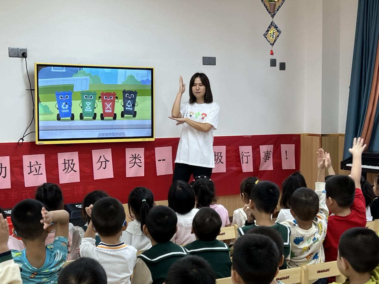 活动开始,由高科第二幼儿园大班主教老师播放精心准备的课件,通过形象生动的垃圾分类动画片、老师细细的讲解,让孩子们认识了四类垃圾分类桶的标识和垃圾的分辨。课堂上老师带领小朋友们动手操作如何将垃圾进行分类,为正确投放垃圾积累了经验。
