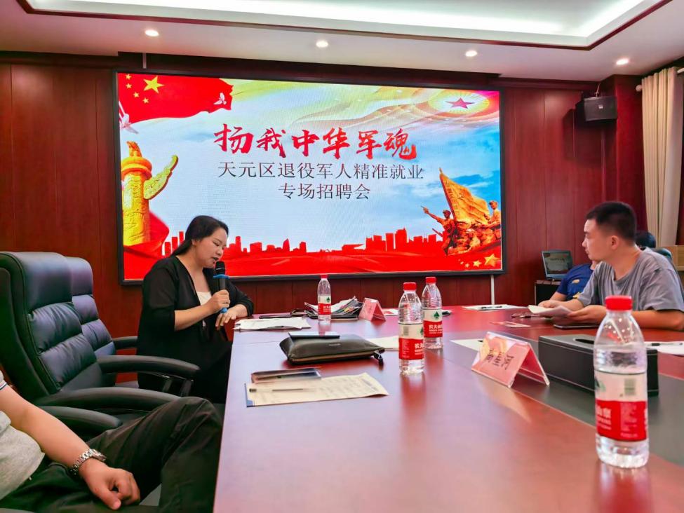 为扎实推进退役军人精准就业创业工作,9月9日下午,天元区退役军人事务局联合天元区人社局就业服务中心等单位组织召开了一场退役军人精准就业创业工作座谈会。