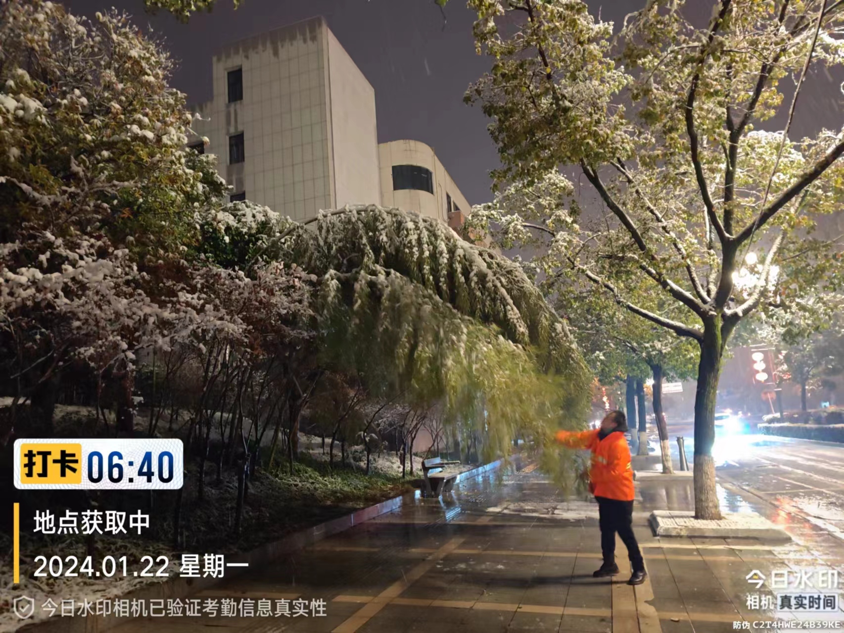 2024年1月22日,天元城管园林中心开展城区大雪应急行动,第一时间启动应急预案,组织应急人员持竿打雪,防雪压折树枝,并清理倒树断枝,确保交通畅行,消除安全隐患。