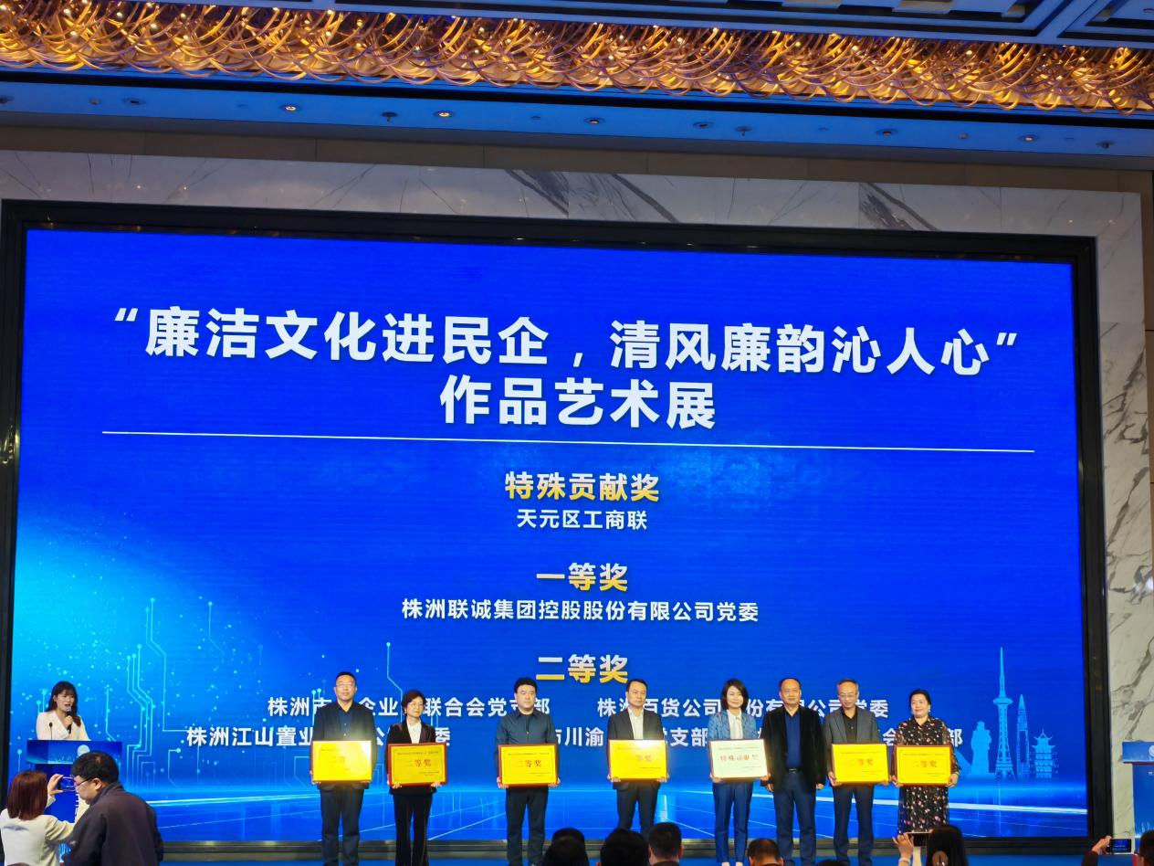 3月28日,株洲市工商联(总商会)举办第十二届四次执委会议,市工商联领导为天元区工商联颁发2022—2023年度全国和湖南省“五好”县级工商联与“廉洁文化进民企,清风廉韵沁人心”作品艺术展特殊贡献奖等牌匾,这是天元区工商联连续4年获评全国“五好”工商联,也是天元区工商联继获评全国工商联2021年度民营企业调查点工作先进示范单位之后荣获的又一国家级荣誉。