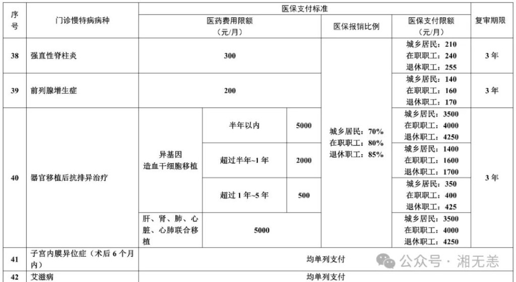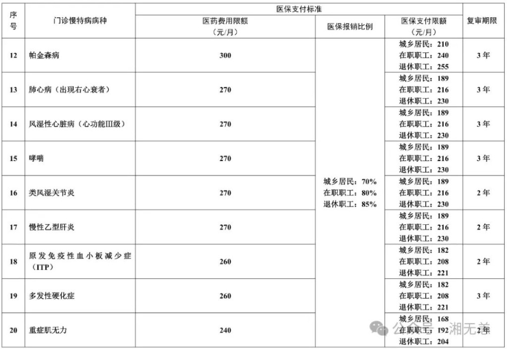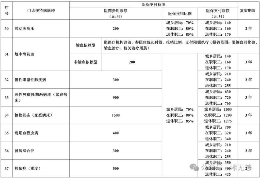 居民和职工门诊慢特病病种范围(居民47个、职工43个)及医保支付标准详见下表1;